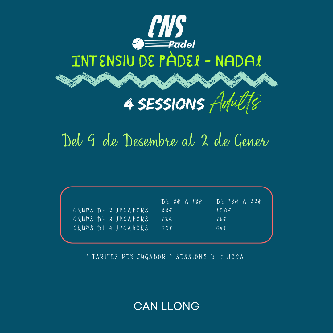 Aprofiteu les festes de Nadal per mantenir-vos actius i millorar el vostre joc amb el nostre Intensiu de Pàdel de Nadal per Adults a Can Llong!